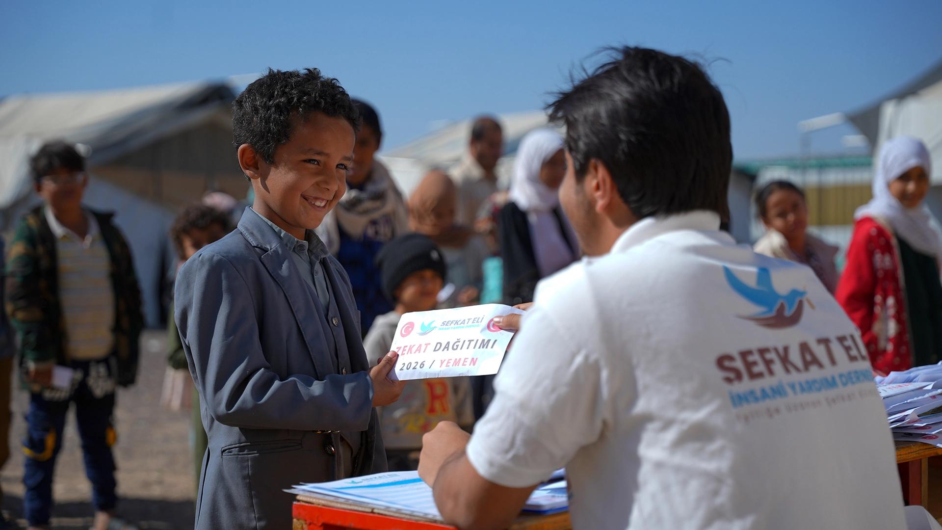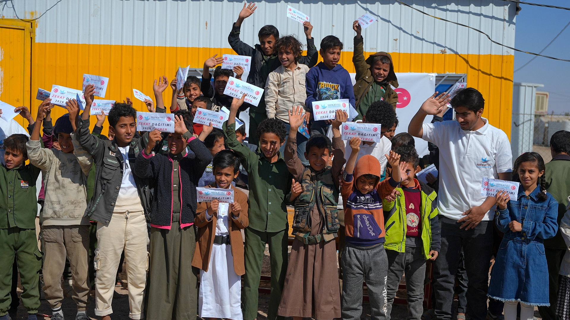Şefkat Eli Derneği olarak, zekât bağışlarınızı Yemen’deki insanlara ulaştırıyor, onlara gıda ve su temini, hijyen malzemeleri ve diğer temel yaşam ihtiyaçlarını sağlıyoruz. Yemen’deki yoksul ailelerin sofralarına sıcak yemekler ve gıda paketleri taşımak, çocukların suya erişimini sağlamak ve sağlık hizmetleri sunmak için çalışmalarımıza devam ediyoruz.
